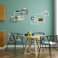 relaxdays Wandregal »Wandregal mit 3 Fächern«, Schwarz Lila Weiß, Schwarz Weiß, Weiß Hellblau