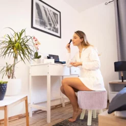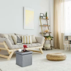 relaxdays Sitzhocker »Runder Sitzhocker mit Stauraum«, Braun Braun Hellbraun, Anthrazit Hellbraun