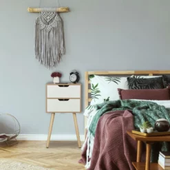 relaxdays Nachtschrank »Schränkchen mit Schubladen« A Hellbraun Weiß Schwarz, Hellbraun Weiß Grau