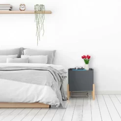 relaxdays Nachttisch »Dunkelgrauer Nachttisch mit Holzbeinen«