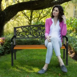 relaxdays Gartenbank »Rustikale Gartenbank Metall & Holz«
