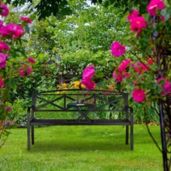 relaxdays Gartenbank »Gartenbank nostalgisch«, Schwarz-Bronze Braun, Schwarz Grün