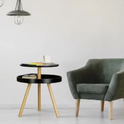 relaxdays Beistelltisch »Beistelltisch rund mit Ablage«, Schwarz Schwarz Hellbraun, Weiß Hellbraun