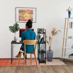relaxdays Schreibtisch »Schreibtisch mit Regal«, Schwarz / Schwarz Braun Schwarz, Weiß