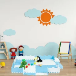 relaxdays Bodenschutzmatte »Puzzlematte mit Rand 120 x 120 cm«, Set, Blau Grau Weiß, Hellblau Weiß