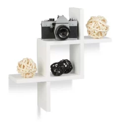 Steckbares Hängeregal für Ihr Zuhause Wenn Sie Figürchen, kunstvoll gestaltete Vasen oder Dekoartikel in den Blickfokus rücken möchten, stellt dieses Wandregal eine starke Alternative zu schwerfälligen Schränken dar. Entscheiden Sie sich für die Farbvariante, die am besten zu Ihrer Wand passt. Das Leichtgewicht lässt sich freischwebend an der Wand aufhängen. Die Montage beansprucht nur wenige Sekunden. Stecken Sie die beiden Teile des Dekoregals einfach zusammen. Die Ablage ist für eine Traglast von maximal 6 kg ausgelegt.