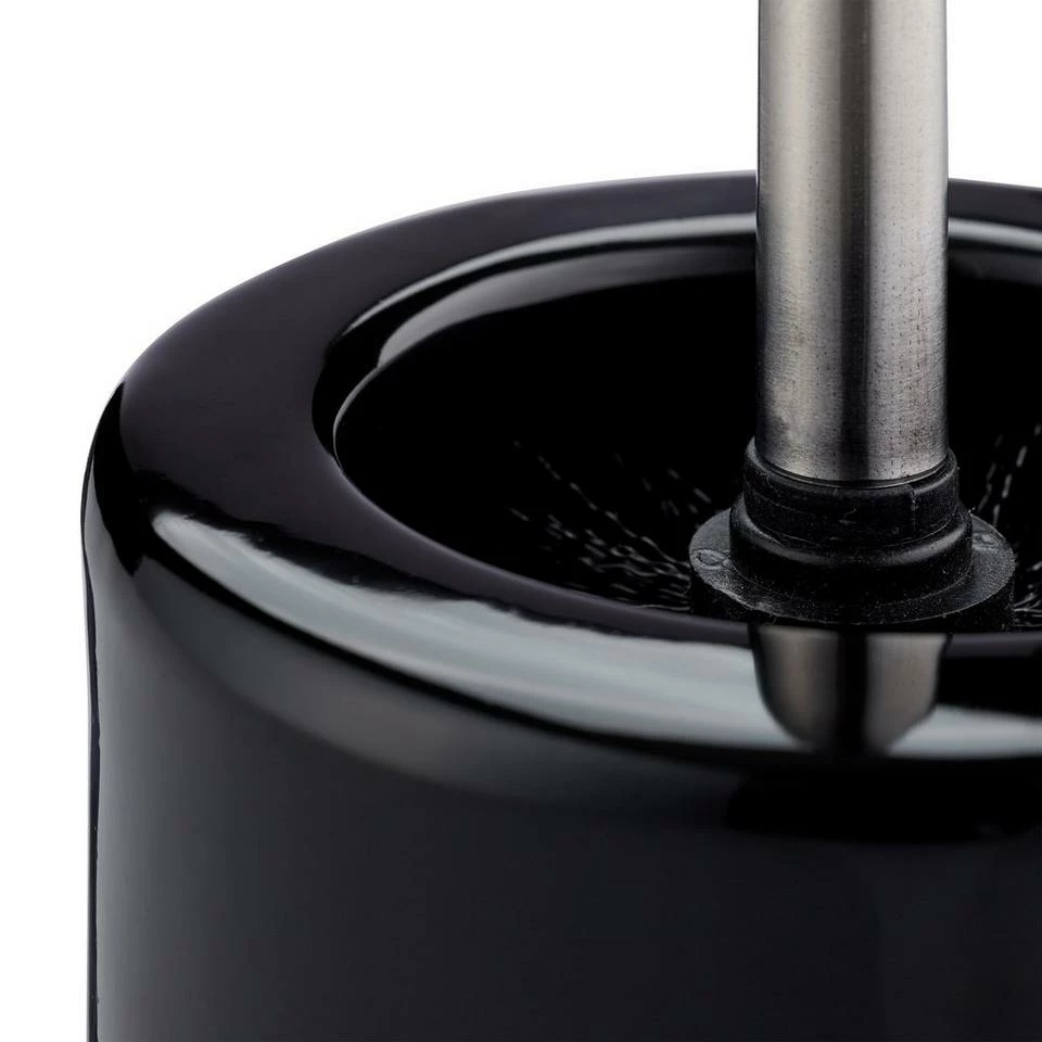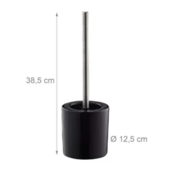 - Stil: Der glänzende Keramikbehälter bildet einen Kontrast zum matten Metall-Griff der Klobürste