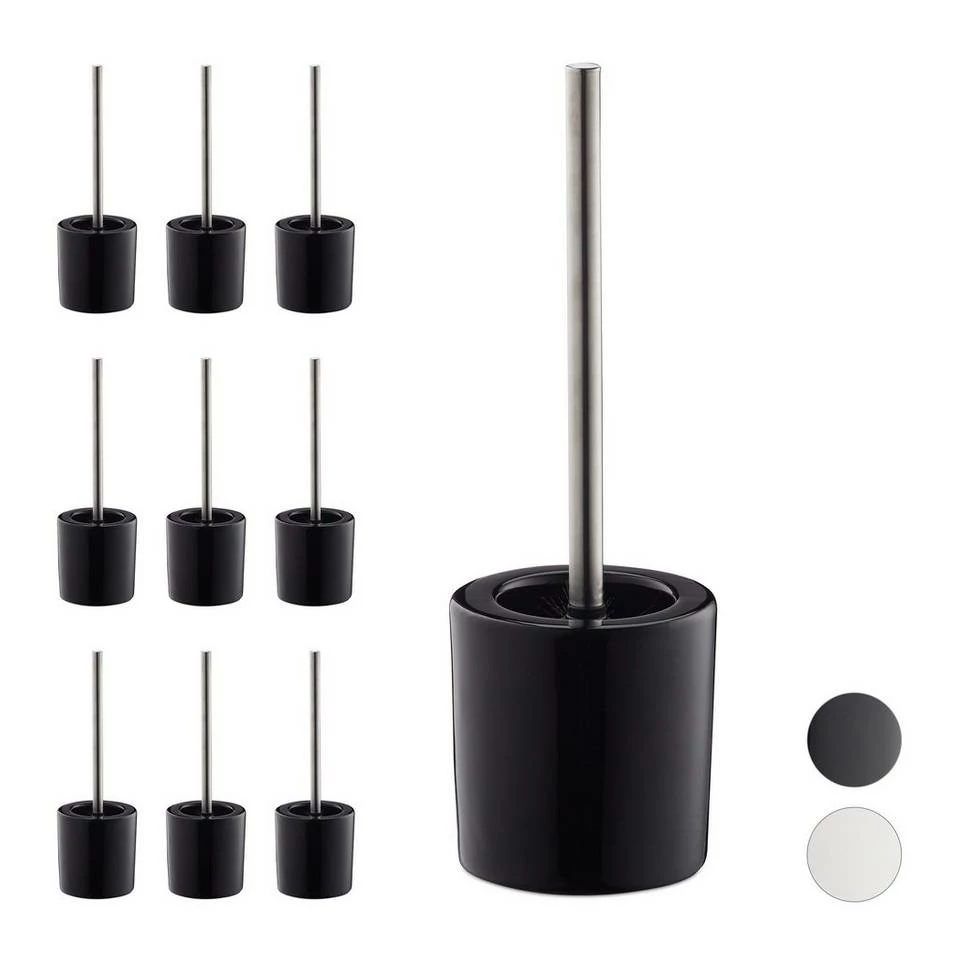 - Zeitloses Set: 10 x Toiletten Garnitur bestehend aus Keramik-Behälter mit Metallgriff-Bürste