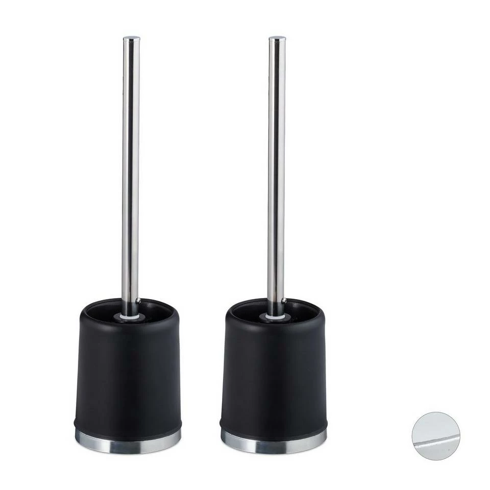 2x WC-Bürstengarnitur ohne Bohren Mit der WC-Garnitur sorgen Sie für Sauberkeit im Bad oder Gäste-WC. Der Bürstenbehälter besteht komplett aus Kunststoff und lässt sich im Handumdrehen ausspülen und mit einem nassen Lappen auswischen. Der WC-Bürstenhalter wird nicht an die Wand montiert, sondern lässt sich flexibel im Raum positionieren. Hygienisch ist auch die WC-Bürste, die nicht nur mit ihrer matten Metalloberfläche punktet. Sie hat einen Bürstenkopf, der sich austauschen lässt, sollte er sich abgenutzt haben. Achtung: Achten Sie beim Kauf eines Ersatzbürstenkopfes darauf, dass der Kopf selbst einen Durchmesser von ca. 7 cm und ein Innengewinde von ca. 17 mm hat.