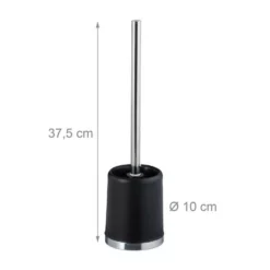 4x WC-Bürstengarnitur ohne Bohren Mit der WC-Garnitur sorgen Sie für Sauberkeit im Bad oder Gäste-WC. Der Bürstenbehälter besteht komplett aus Kunststoff und lässt sich im Handumdrehen ausspülen und mit einem nassen Lappen auswischen. Der WC-Bürstenhalter wird nicht an die Wand montiert, sondern lässt sich flexibel im Raum positionieren. Hygienisch ist auch die WC-Bürste, die nicht nur mit ihrer matten Metalloberfläche punktet. Sie hat einen Bürstenkopf, der sich austauschen lässt, sollte er sich abgenutzt haben. Achtung: Achten Sie beim Kauf eines Ersatzbürstenkopfes darauf, dass der Kopf selbst einen Durchmesser von ca. 7 cm und ein Innengewinde von ca. 17 mm hat.