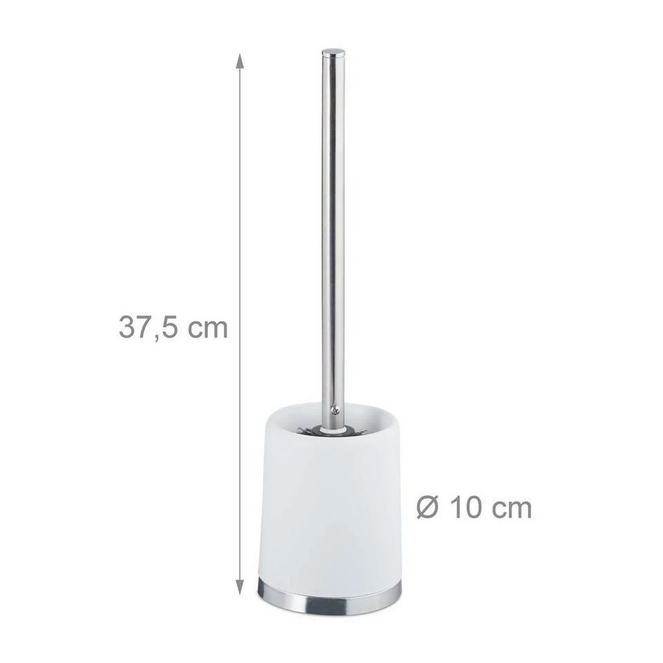 4x WC-Bürstengarnitur ohne Bohren Mit der WC-Garnitur sorgen Sie für Sauberkeit im Bad oder Gäste-WC. Der Bürstenbehälter besteht komplett aus Kunststoff und lässt sich im Handumdrehen ausspülen und mit einem nassen Lappen auswischen. Der WC-Bürstenhalter wird nicht an die Wand montiert, sondern lässt sich flexibel im Raum positionieren. Hygienisch ist auch die WC-Bürste, die nicht nur mit ihrer matten Metalloberfläche punktet. Sie hat einen Bürstenkopf, der sich austauschen lässt, sollte er sich abgenutzt haben. Achtung: Achten Sie beim Kauf eines Ersatzbürstenkopfes darauf, dass der Kopf selbst einen Durchmesser von ca. 7 cm und ein Innengewinde von ca. 17 mm hat.