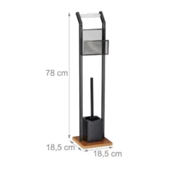 WC-Bürstengarnitur mit Aufbewahrungsfach Dank der WC-Garnitur haben Sie alles an einem Ort, was Sie im Badezimmer benötigen: einen WC-Bürstenhalter, einen Toilettenpapierhalter und natürlich die passende Klobürste. Die Badgarnitur ist zudem mit einem Ablagefach im Gitter-Design ausgestattet, das Platz für Handys oder Bücher bietet. Die quadratische Basis in Holzoptik sorgt für den festen Stand des WC-Sets. Die abgenutzte WC-Bürste brauchen Sie nicht gegen einen neue auszutauschen – wechseln Sie einfach den Kopf! Den passenden Ersatzkopf (ca. 8 cm Durchmesser und 12 mm inneres Gewinde) gibt's bei Relaxdays (Modell 10021026).