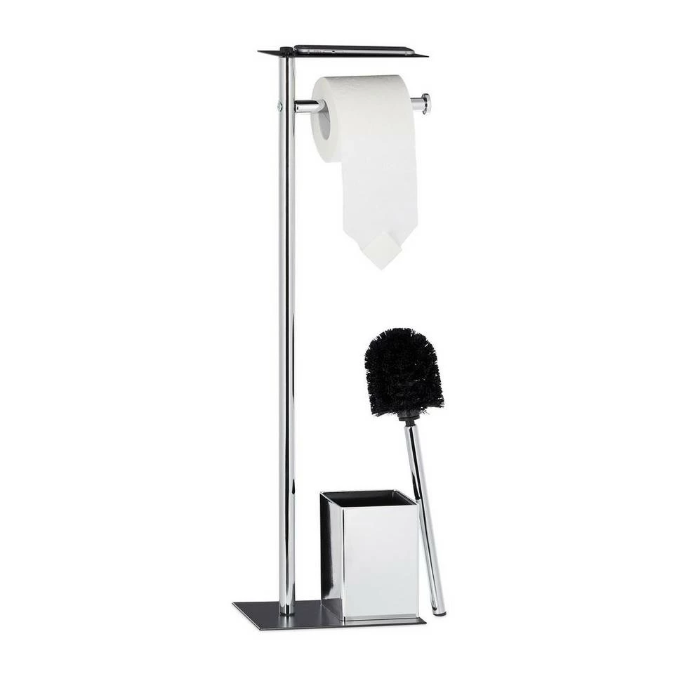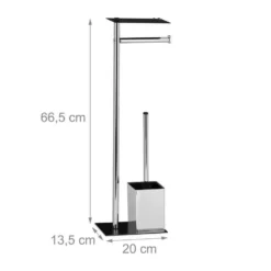 - WC Zubehör Set: Freistehende WC Garnitur bestehend aus einem Toilettenpapierhalter mit offenem Bürstenhalter inklusive Toilettenbürste – Maße H x B x T: ca. 66,5 x 20 x 13,5 cm