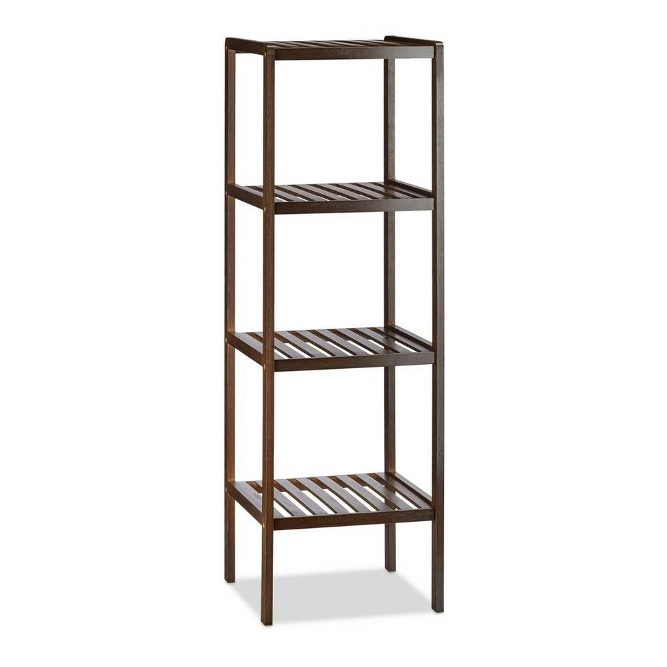 Bambus Badregal in edlem Dunkelbraun In Ihrem Haushalt wimmelt es nur so von unterschiedlichen Schuhen, Büchern, Küchengeräten oder Badutensilien? Das Standregal aus Bambus nimmt nur eine geringe Stellfläche ein, schafft mit seiner Höhe von ca. 110 cm jedoch viel neuen Stauraum. Die Gitter der 4 quadratischen Ablageflächen sind nicht nur praktisch, sondern dank ihrer dunkelbraunen Farbgebung auch sehr sehenswert. Egal, ob nun in Bad, Küche oder Diele. Dank der abgerundeten Ecken ist das Holzregal auch ein erstklassiger Mitstreiter im Kinderzimmer. Von uns bekommen Sie das nötige Werkzeug und die Schrauben, sodass Sie im Handumdrehen mit dem Aufbau des Bambusregals anfangen können.