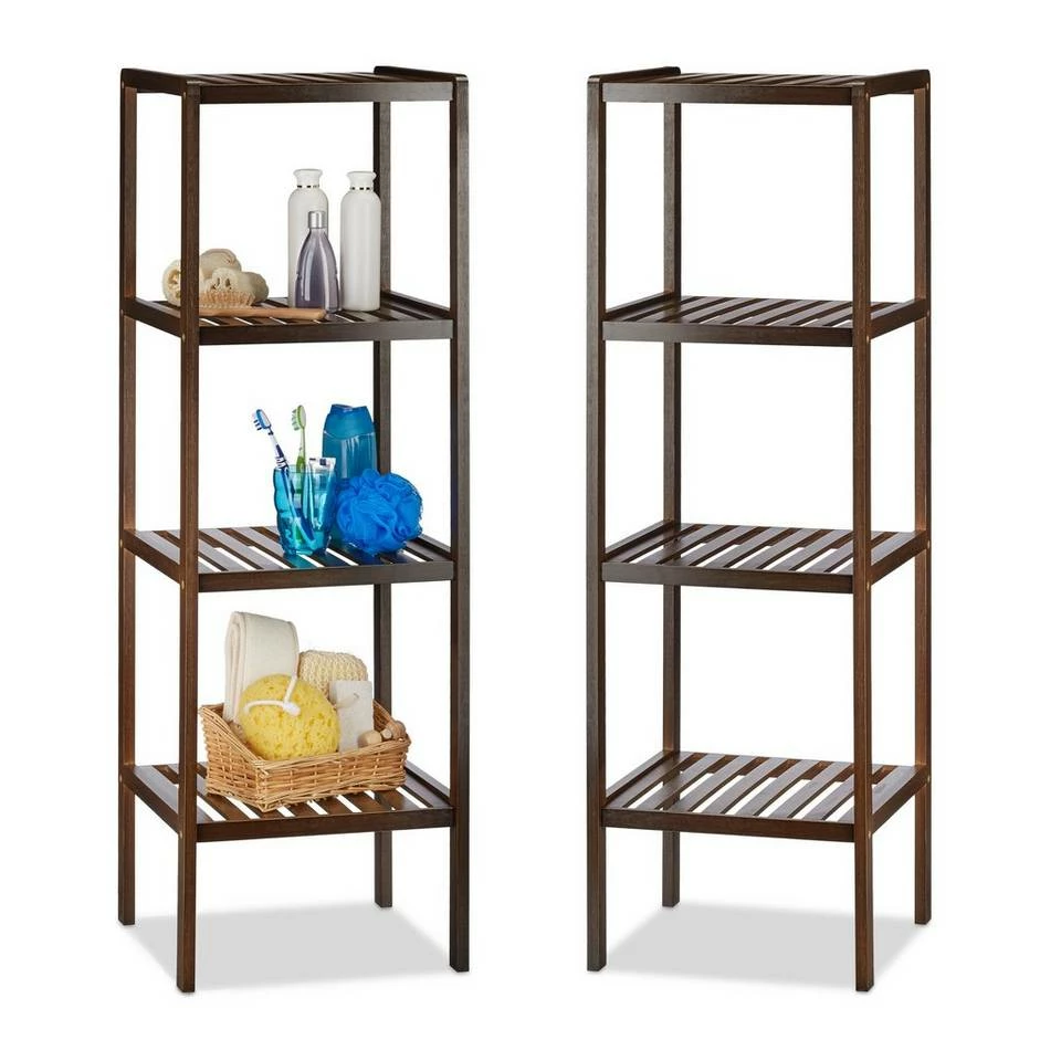 - 2 x Badregal aus Bambus: Die 4 Ablageflächen bieten zusätzlichen Stauraum – Dank kleiner Stellfläche ideal bei Platzmangel