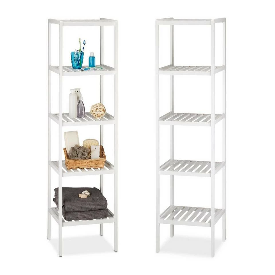 - 2 x Badregal aus Bambus: Die 5 Ablageflächen bieten zusätzlichen Stauraum – Dank kleiner Stellfläche ideal bei Platzmangel