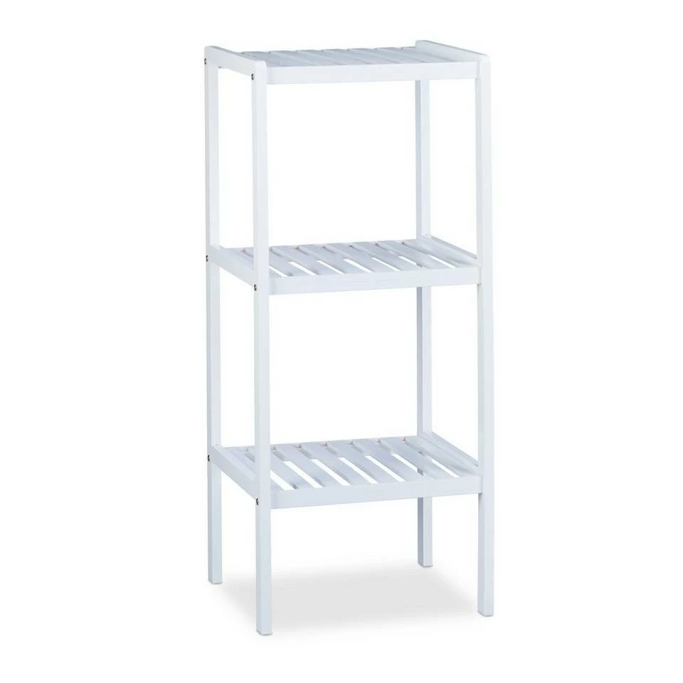 - Robustes Badregal aus Bambus: Maße HxBxT: ca. 80 x 34,5 x 33 cm – Die 3 Ablageflächen bieten viel Stauraum – Dank kleiner Stellfläche ideal bei Platzmangel