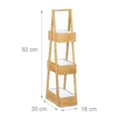 - Besser organisiert: Schmales Bambus Badregal für mehr Ordnung im Badezimmer – Stauraum für Cremes, Shampoos und mehr – Organizer mit H x B x T 82 x 18 x 30 cm