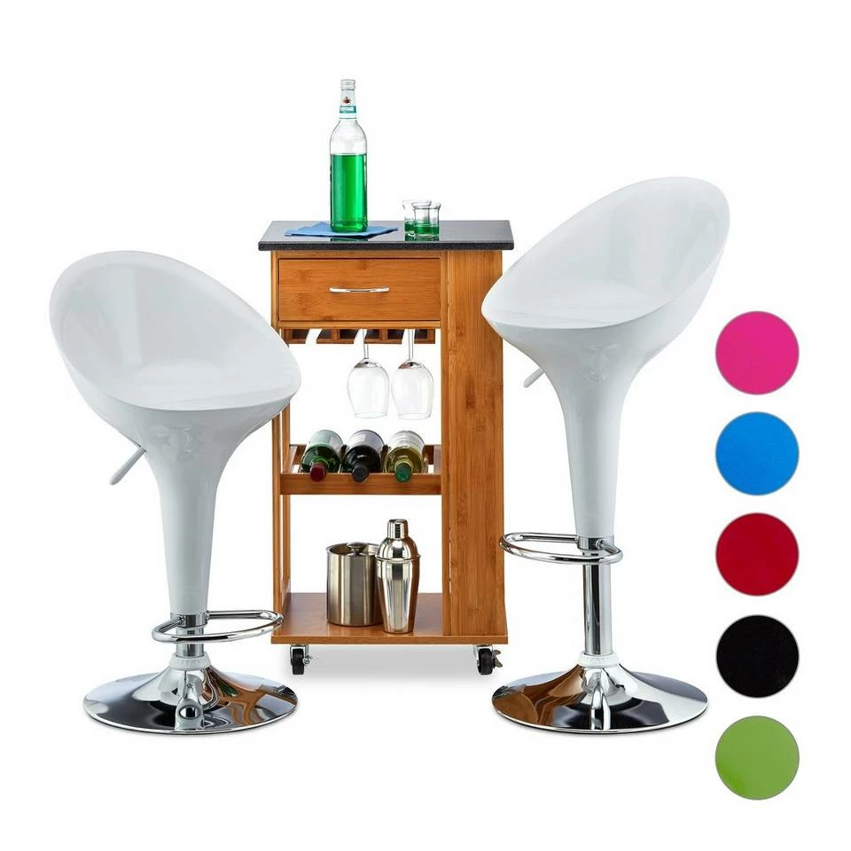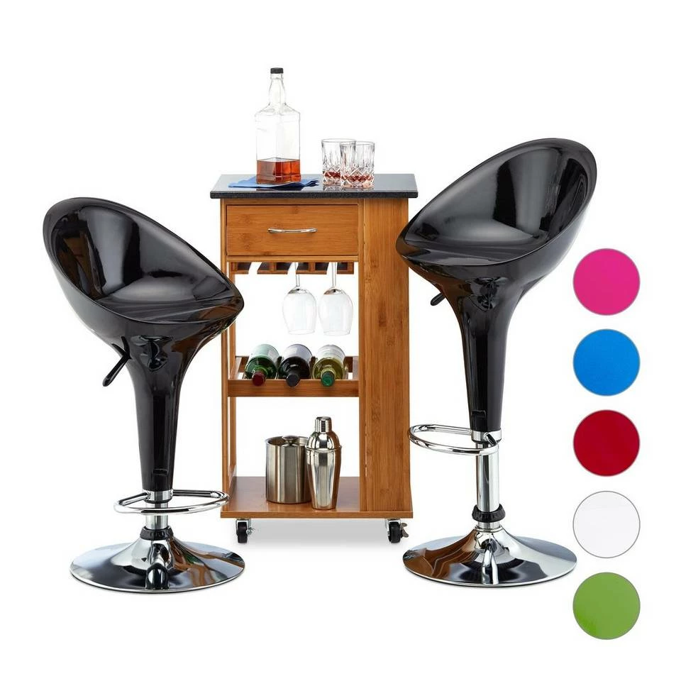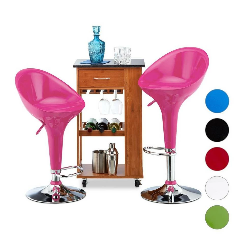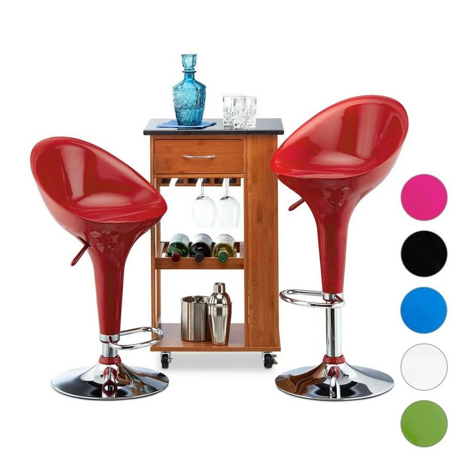 2er Set Barhocker Mit diesen kultigen Barhockern sorgen Sie garantiert für einen Blickfang an Ihrer Theke oder Bar. Das geschwungene Design im Retro-Stil harmoniert perfekt mit den knalligen Farben und den verchromten Elementen. Die runde Sitzfläche und die praktische Fußablage sorgen für den richtigen Sitzkomfort. Ein weiterer Vorzug ist die einfach verstellbare Höhe der Hocker. Mit einer Auswahl von vielen verschiedenen Farben ist für jeden Geschmack der passende Barstuhl dabei.