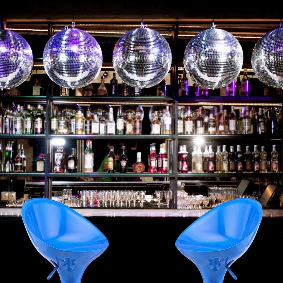 - 2er Set: 2 blaue Barhocker mit verchromten Standfuß – Toller Blickfang für jede Bar oder Theke