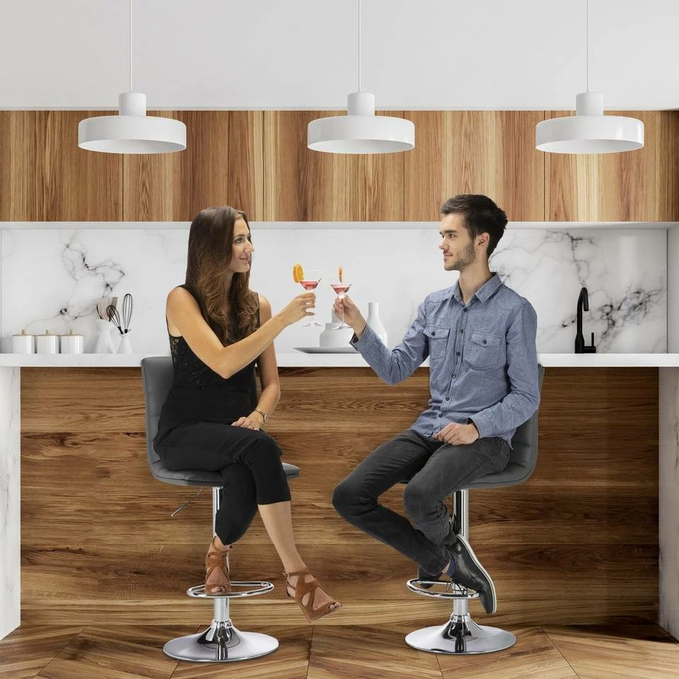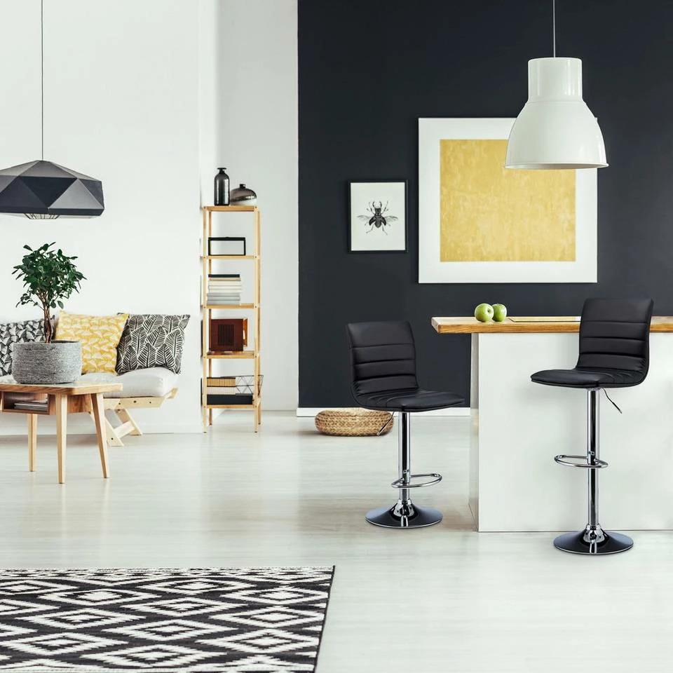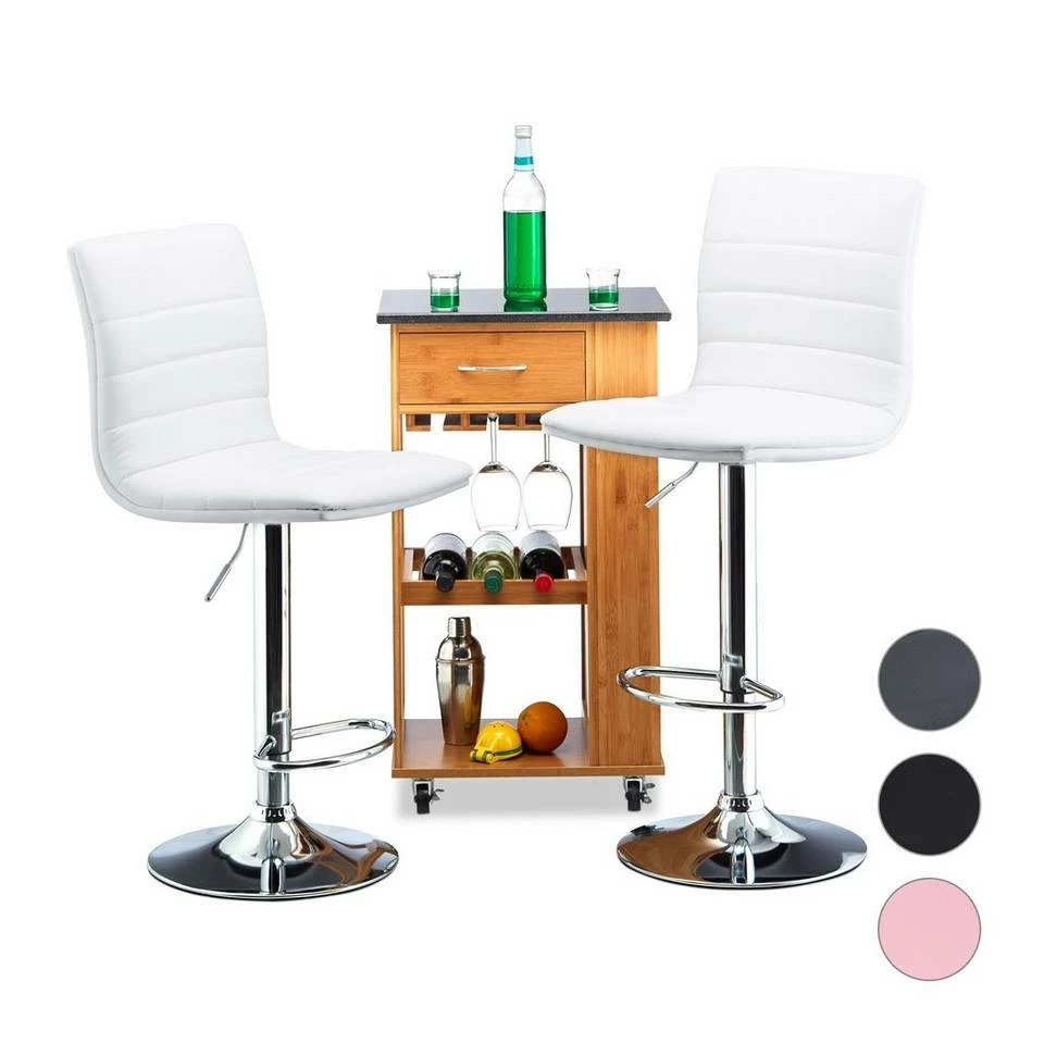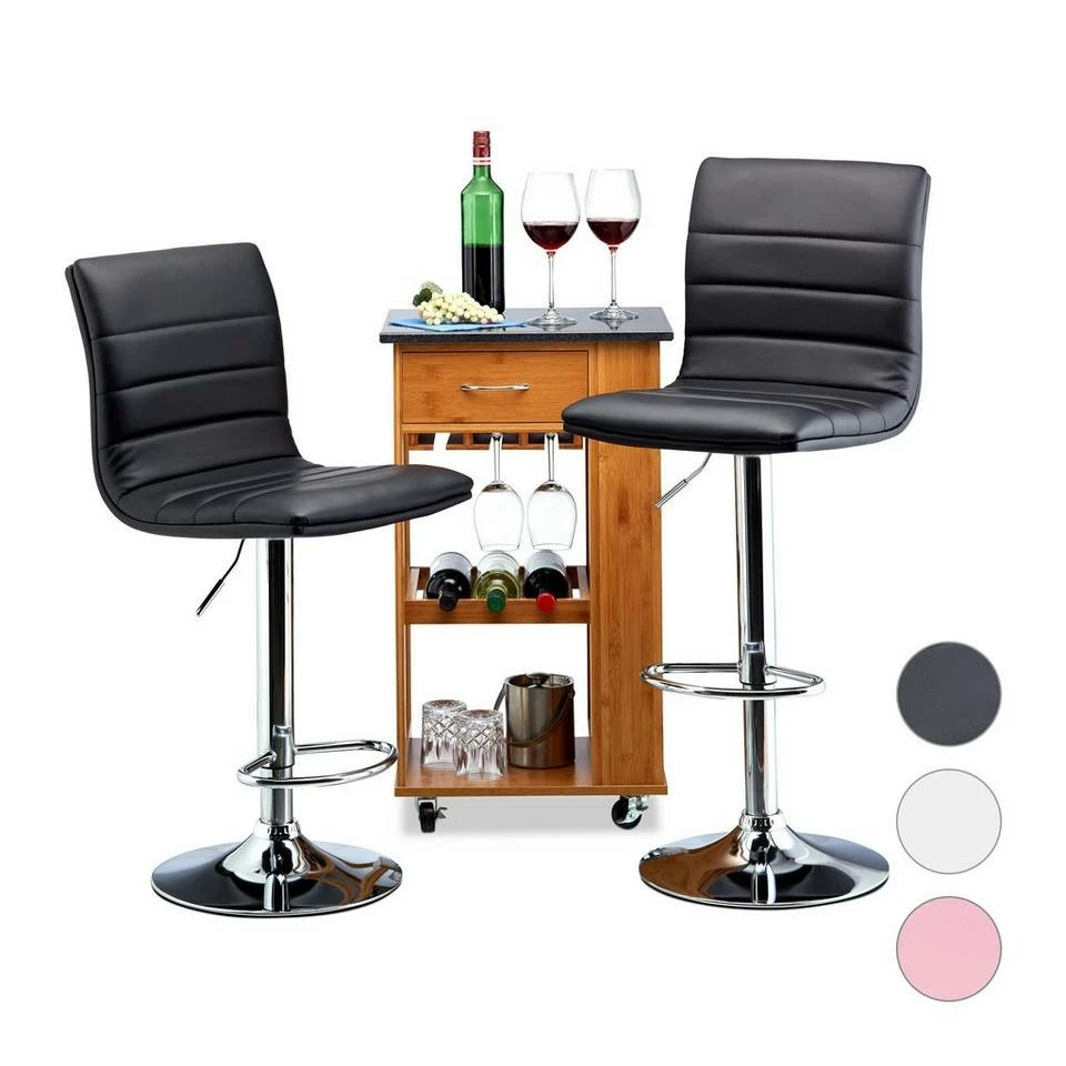 2er Set Barhocker Machen Sie es sich auf diesen eleganten Barhockern bequem – Egal ob in der Küche beim Kochen, im Esszimmer beim Speisen oder an Ihrer Hausbar. Das weiche Polster der Hocker lädt zum Entspannen und Verweilen ein. Für zusätzlichen Komfort sorgen die Fußleiste und die weiche Rückenlehne. Optisch überzeugen die Barsessel durch den spannenden Materialmix aus Kunstleder und verchromten Stahl. Die Barstühle sind in verschiedenen Farben erhältlich.