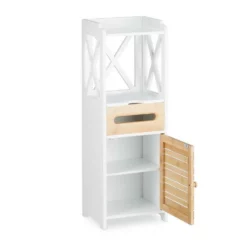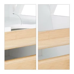 - Modern: Weißer Korpus mit Blenden aus Bambus erinnert an skandinavisches Design – Gekreuzte Streben im oberen Regalfach geben dem Mehrzweckschrank einen Landhaus Look