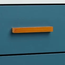 - Weißer Korpus und 2 türkise Schubladen – Das Holz ist matt lackiert und sehr kratzfest – Die beiden Schubladen haben einen Rollstopp und verfügen über stylische Holz-Griffe