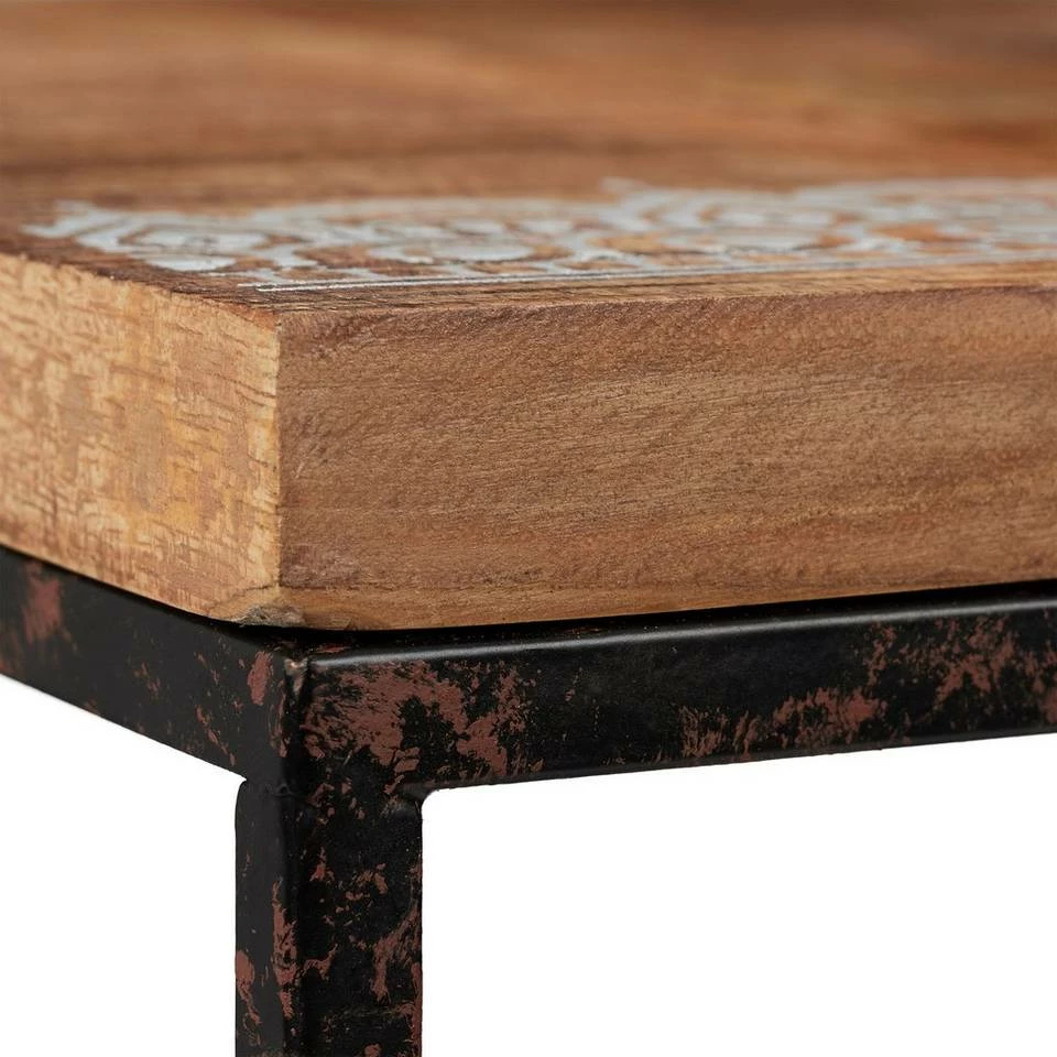 - Design: Sofatisch im Stilmix – Tischplatte mit natürlicher Maserung und Muster – Shabby Metallbeine
