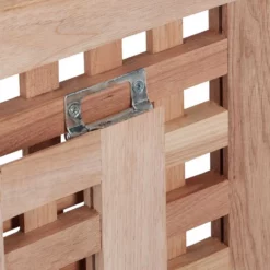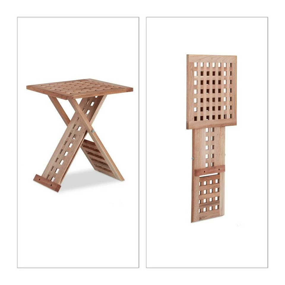 Beistelltisch mit dekorativer Gitter-Optik Einen Beistelltisch kann man in jedem Zimmer gut gebrauchen – Ob für die Nachttischlampe neben dem Bett, das Telefon im Flur oder das Glas Wein abends neben der Couch. Wenn Sie aber doch einmal keine Verwendung für das kleine Tischchen haben, können Sie es problemlos zusammenklappen und platzsparend verstauen. Der Klapptisch mit dekorativer Gitter-Optik ist komplett aus natürlichem Walnuss-Holz gefertigt und hat eine schöne Maserung.