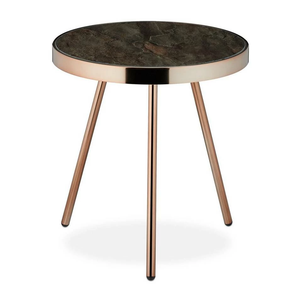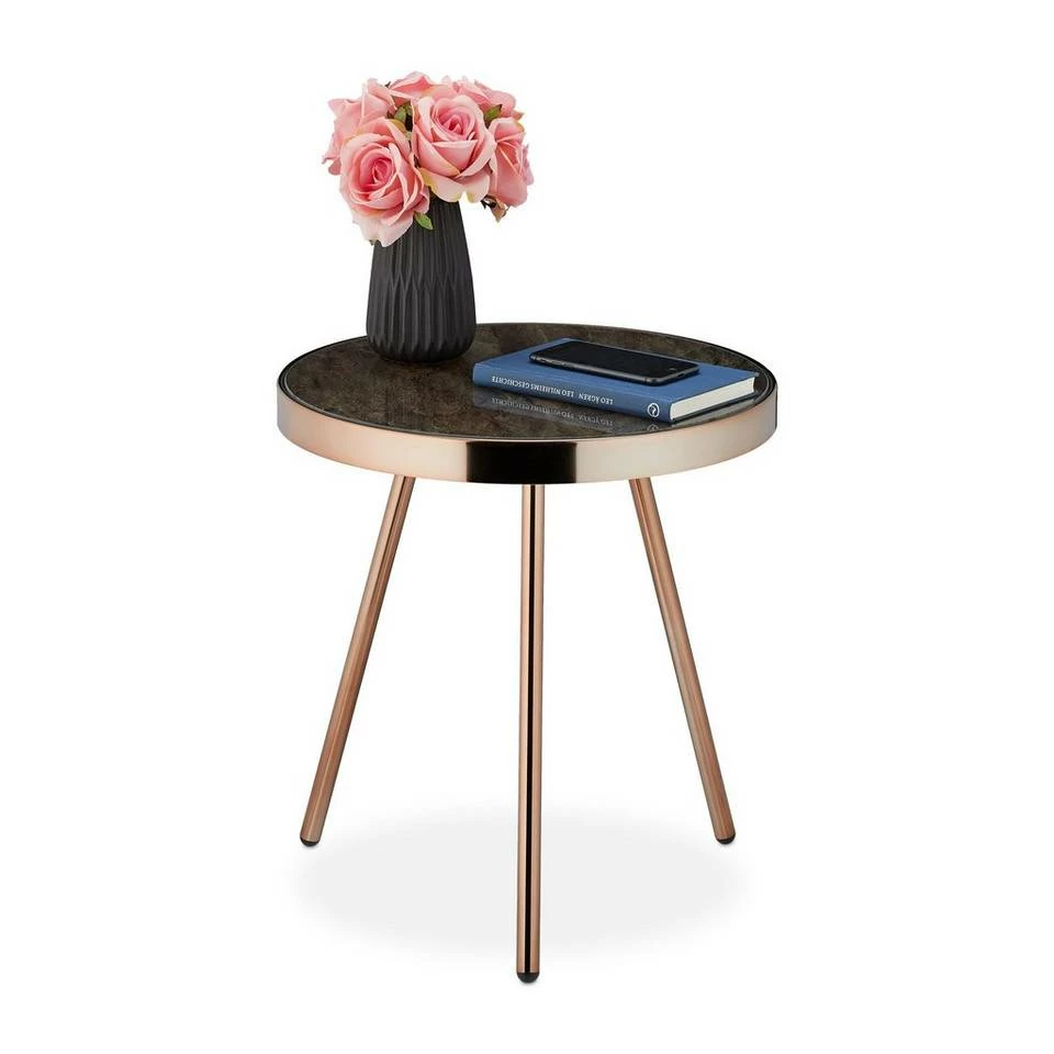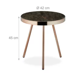 - Retro Design: Tischchen in edler Kombi aus dunkler Glasplatte in Marmor-Optik u. Gestell in Roségold