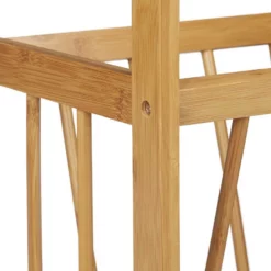 Beistelltisch mit Zeitungsständer Der Beistelltisch mit Zeitungsständer stellt eine dekorative und funktionale Möbelkombination dar. Auf der Tischplatte haben Sie Platz für Deko, Pflanzen, Bücher und andere Kleinigkeiten. Im Zeitungsfach können Sie Ihre Magazine und Printformate ablegen. Dazu gibt es eine Ablage als weiteren Stauraum für Telefone und Notizen. Mit dem verwendeten Material im natürlichen Design ist der Beistelltisch ein echter Hingucker. Bambus ist besonders gegen Feuchtigkeit resistent und macht einen Einsatz in unterschiedlichen Räumen möglich.