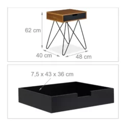 Trendiger Seitentisch mit Schublade & Hairpin Legs Sie sind auf der Suche nach einem Beistellstelltisch für Ihre Wohnung? Wie wäre es mit diesem Hingucker? Dank der Ablage in angenehmer Höhe ist der Couchtisch bestens für das Wohnzimmer geeignet, um Fernbedienung, Handy oder Snacks immer greifbereit zu haben. Auch eine Nutzung im Flur oder im Schlafzimmer als Nachtkonsole ist möglich. Bücher oder private Dinge können in der integrierten Schublade blickdicht verstaut werden. Der Vintage Seitentisch setzt mit seiner tollen Holz-Optik und den Hairpin Legs überall Akzente.