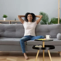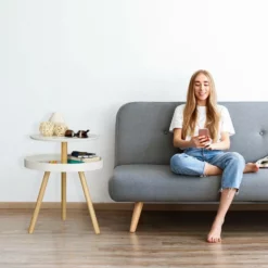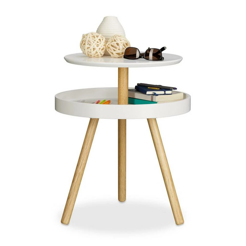- Großes Fach: Tischchen mit kreisrunder Ablage für Stifte, Zettel, Brille, Wolle, Snacks uvm. – Der Tisch schafft Ordnung, Platz und Übersicht