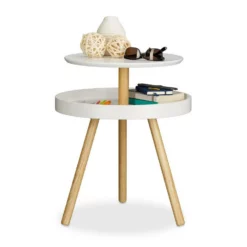 Beistelltisch rund mit Stauraum Der runde Beistelltisch fügt sich gemütlich und freundlich in Ihre Einrichtung. Das helle Birkenholz verströmt natürliches Flair. Die matt lackierte Tischplatte sorgt für dezente Eleganz. Mit seiner niedrigen Höhe eignet sich der Tisch ideal als Ablage neben dem Sofa oder dem Sessel. In der großen Ablage können Sie zudem Stifte, Notizblöcke, Snacks oder die Fernbedienung lagern. Damit haben sie alle kleinteiligen Sachen aus dem direkten Blickfeld entfernt und trotzdem immer griffbereit.