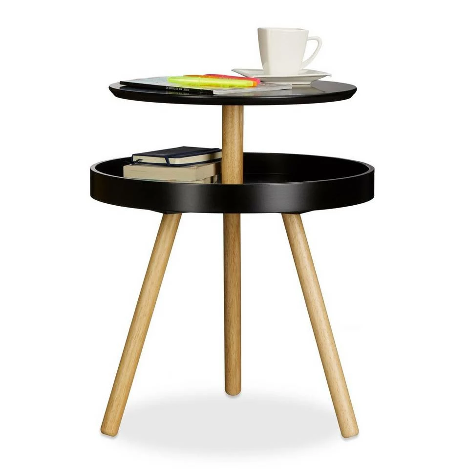 - Praktisch: Schwarzer runder Wohnzimmertisch mit großer Ablage für viel Stauraum auf kleiner Fläche