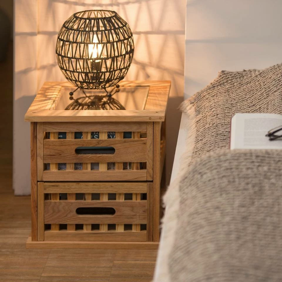 relaxdays Beistelltisch »Beistelltisch Walnuss mit 2 Schubladen«