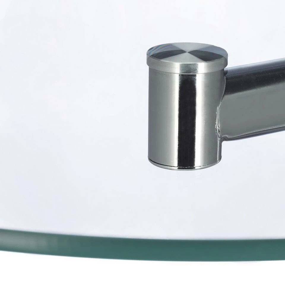 Stilvoller Kaffeetisch – Glas und Chrom für Kaffee und Kuchen Genießen Sie gemütliche Stunden bei Kaffee und Kuchen mit dem formschönen Kaffeetisch aus Glas. Der Teetisch im originellen Design besticht durch seine runde Glasplatte und dem verchromten Tischbein mit Knick. Der platzsparende Beistelltisch ist ideal für lauschige Ecken in der Wohnung, im Garten oder auf dem Balkon. Die Ablage bietet Platz für 2 Gedecke. Legen Sie eine Kaffeepause mit Ihrem Partner ein und erfreuen Sie sich an dem stilvollen Kaffeetisch. Das kleine Multitalent eignet sich auch als Nachttisch im Schlafzimmer oder als Couchtisch im Wohnzimmer.