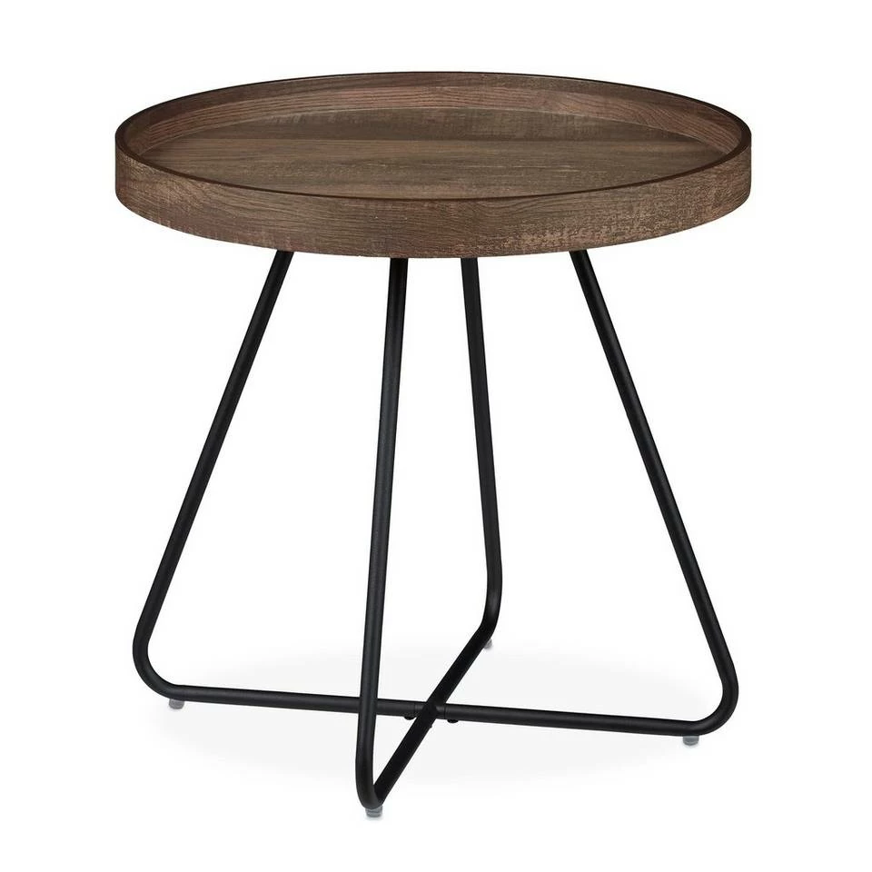 - Design: Nebentisch im modernen Materialmix aus schwarzem Metall und Tischplatte in brauner Holzoptik