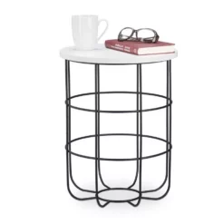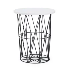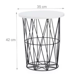 Runder Beistelltisch als stylisches Wohnaccessoire Dieser außergewöhnliche Beistelltisch im modernen Design ist ein absoluter Hingucker in Ihren 4 Wänden! Ob als dekorativer Couchtisch in Ihrem Wohnzimmer, als praktische Zeitungsablage im Flur oder Büro oder, ganz klassisch, als Nachttisch neben Ihrem Bett. Die weiße Ablage mit Metallkorb ist ein wahres Allroundtalent. Die schlichte Farbgebung und die zeitlos schöne Formgebung des Loungetisches fügt sich in nahezu jeden Einrichtungsstil ein. Die glatt lackierte Tischplatte ist aus robustem MDF und ist äußerst pflegeleicht. Das runde Metallgestell lässt das Tischchen stabil und sicher stehen.