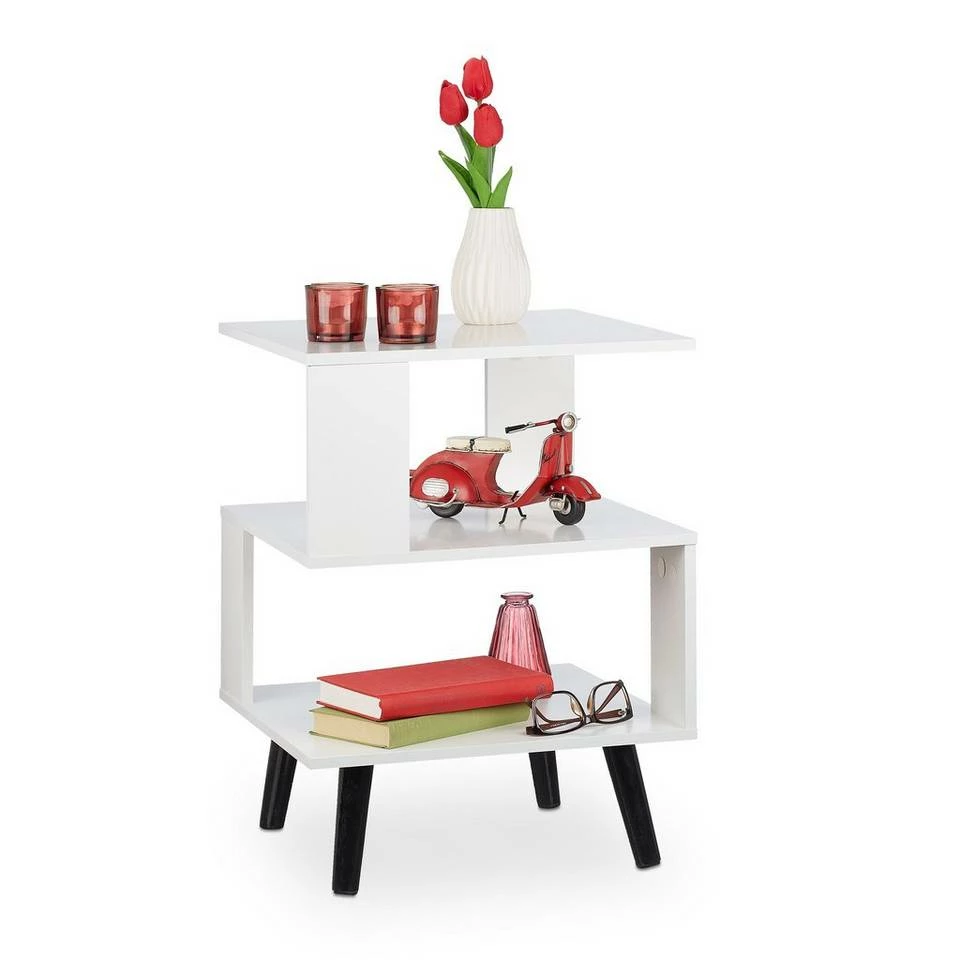 - Dekorativ: Aufbewahrungstisch mit eckiger Tischplatte – Klare Struktur der 3 Ablagen als Blickfang