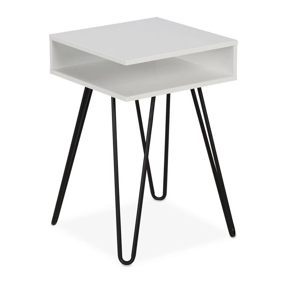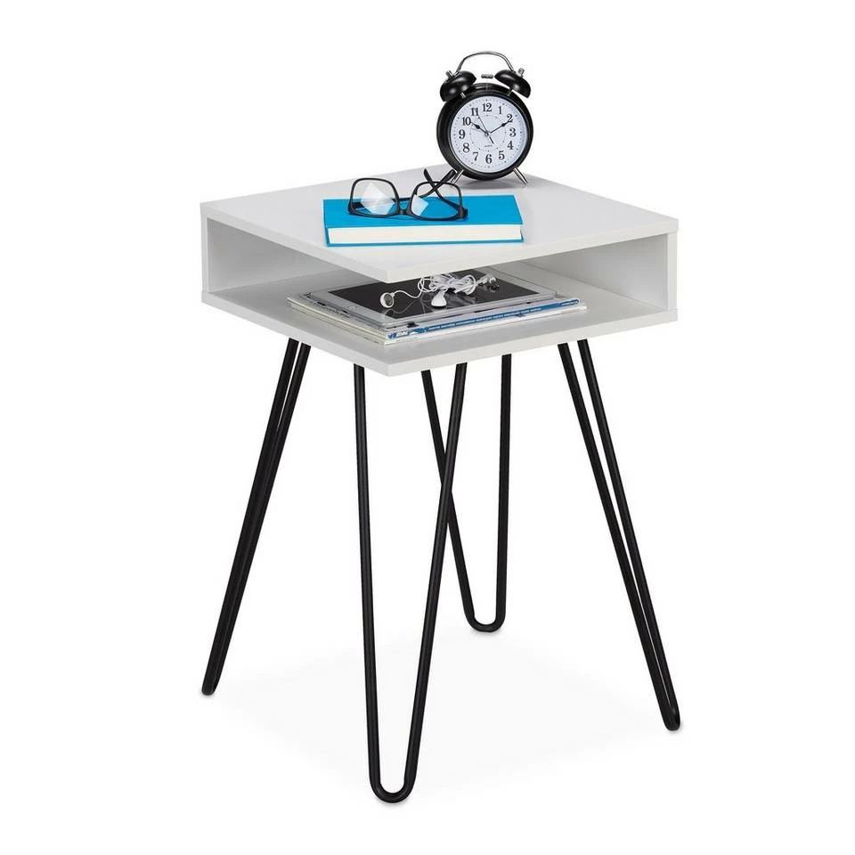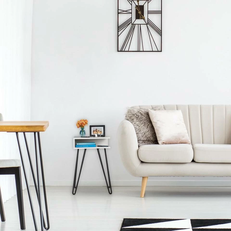- Design: Sofa-Beistelltisch mit schwarzen Hairpin Legs und weißem Korpus – Tischchen in modernem Look