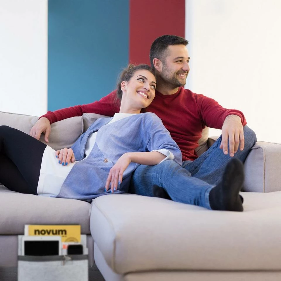Betttasche zum Einhängen Schaffen Sie sich mehr Platz auf dem Nacht- oder Couchtisch mit dem praktischen Bett Organizer zum Einhängen. Die Filztasche mit 5 Fächern ist ideal zur sortierten Aufbewahrung von Fernbedienung, Handy, Zeitung und Lieblingslektüre. Die weiche Sofatasche schützt technische Geräte vor Kratzern und dank Öffnungen für Ladekabel können Smartphone oder Tablet auch direkt in der Tasche aufgeladen werden. Klemmen Sie die Klappe des Sofa Butlers einfach zwischen Matratze oder Polster, um die Aufhängung zu nutzen.