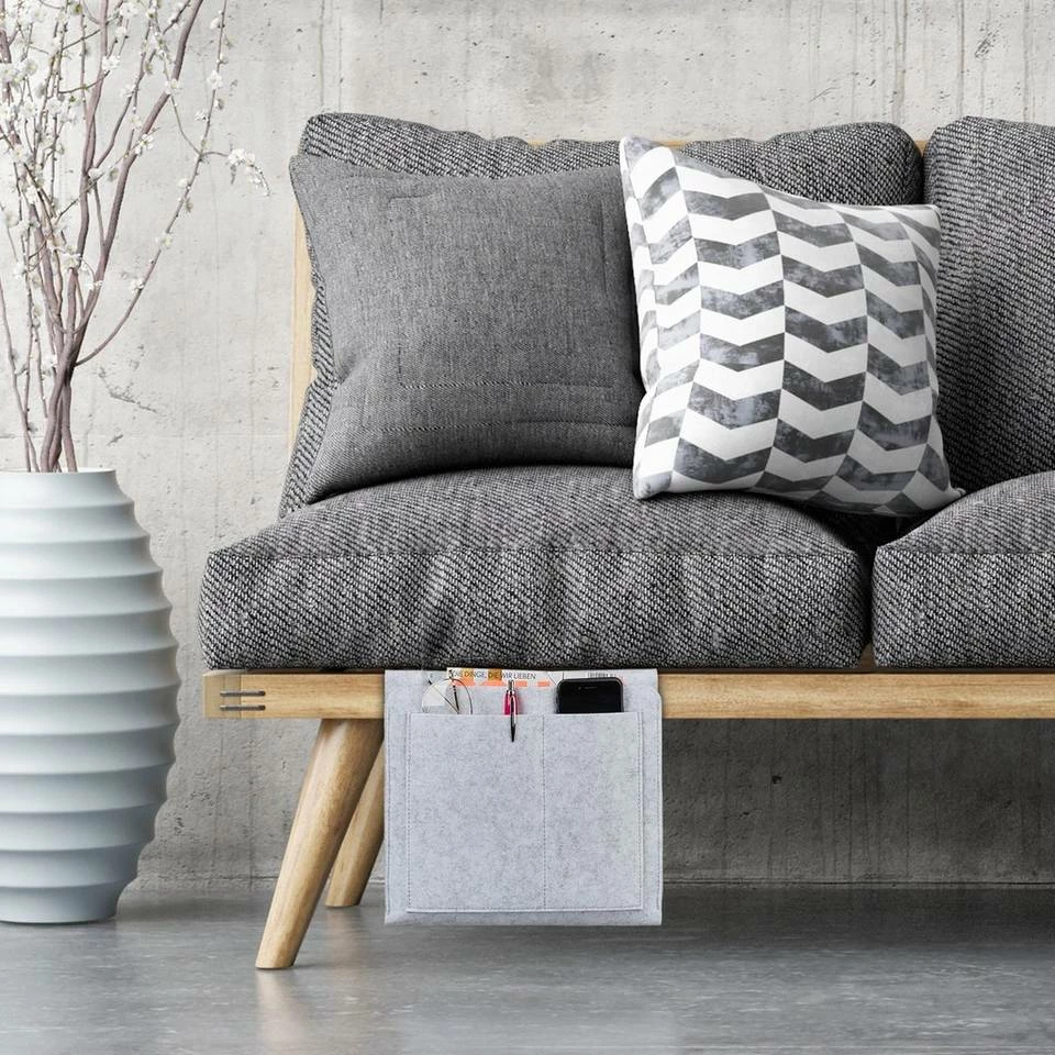 - Filz: Bettseitentasche aus weichem Filz zum Schutz vor Kratzern – Hellgrauer Stoff mit sauberer Naht