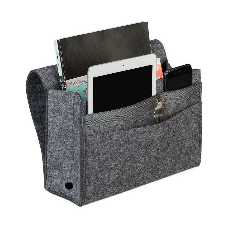 - Filz: Bettseitentasche aus weichem Filz zum Schutz vor Kratzern – Dunkelgrauer Stoff mit sauberer Naht