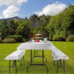 - Größe: Passend für alle gängigen Bierzeltgarnituren – Decke ca. 250x100cm – Auflagen ca. 250x55cm