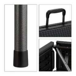 Faltbare Partybank im Set für Bierzelt, Pavillon & Co. Bei Grillfesten, auf dem Campingplatz oder beim Zusammensitzen auf der Terrasse ist eine flexible Sitzgelegenheit von besonderem Vorteil. Mit dieser Faltbank im Set sind Sie dafür bestens ausgestattet. Die Heurigen Bank ist sowohl im Handumdrehen aufgebaut als auch schnell zusammengeklappt. Somit lässt sie sich platzsparend verstauen oder einfach mit dem Tragegriff transportieren. Die schwarze Festzeltbank aus robustem Kunststoff macht dabei dank moderner Rattan-Optik überall eine gute Figur.