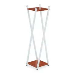 Dekorativer Topfpflanzenständer Mit diesem Pflanztisch setzen Sie Ihre Blumen und Pflanzen perfekt in Szene. Egal ob bunte Orchidee, schlichtes Einblatt oder exotische Palme – mit der Dekosäule wird jedes Pflänzchen zum garantierten Hingucker. Die Holzoptik der Ablagen harmoniert perfekt mit dem weißen Metallgestell, dessen X-Design der Blumenetagere einen ganz besonderen Look verleiht. Platzieren Sie den Pflanzenhocker in Wohnzimmer, Flur oder Wintergarten und verleihen Sie Ihrer Wohnung das gewisse Etwas.