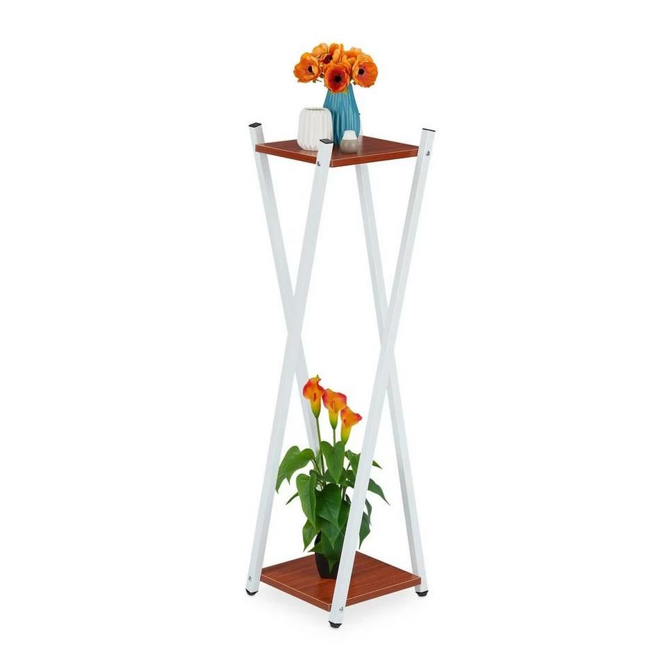 - 2 Etagen: Modernes Blumengestell mit 2 Ebenen in rotbrauner Holzoptik – Auch für Deko geeignet