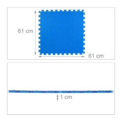 Pflegeleichte Bodenschutzmatten aus Schaumstoff Mit den blauen Steckmatten dämpfen Sie Geräusche und schützen den Boden vor Kratzern, Dellen und Abdrücken zugleich. Stellen Sie die heimischen Fitnessgeräte, wie Hantelbank oder Crosstrainer, einfach auf die beliebig erweiterbaren und veränderbaren Puzzlematten, sodass sie Stöße effektiv dämpfen. Aber auch für die tägliche Sporteinheit sind die Schaumstoffmatten ideal. Bei Sit Ups, Aerobic oder Yogaeinheiten schonen die Matten – dank des weichen Untergrundes – Gelenke und Rücken.