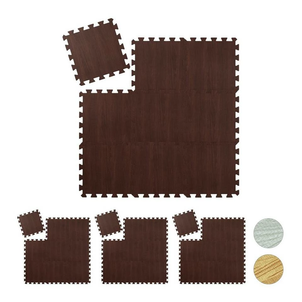 - Basics: Schaumstoffmatten aus EVA (BPA-frei) – Fläche: ca. 3,4 m² – Dekorative Holzoptik in Braun